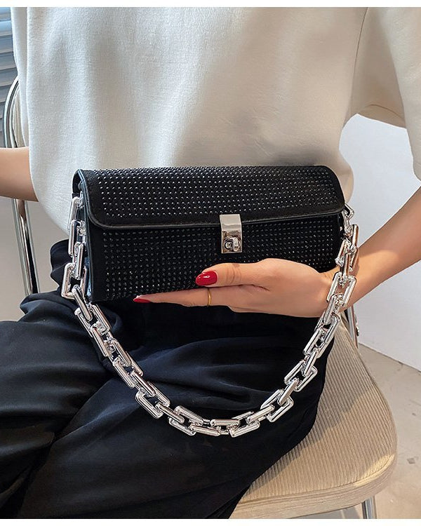 Expertly crafted for both style and convenience, the Maggie Crossbody Rhinestone Bag is the perfect accessory for any outfit. With its sleek design and sparkling rhinestones, you'll be sure to turn heads. The adjustable strap allows for a customizable fit, while the multiple compartments provide ample storage for all your essentials. Elevate your look with the Maggie Crossbody Rhinestone Bag.